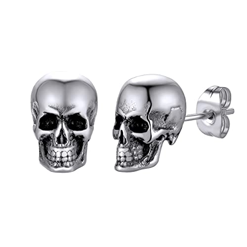 Clou d'Oreille Tete de Mort Acier Skull Boucle Viking Homme Crane Punk Boucles d'oreilles Gothique Garcon Hip Hop Clou Oreille Femme Ado Jeune Cadeau Copain