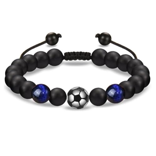 ARYIMYDP Cadeau Garçon 8-12 Ans Bracelet de Foot, Bracelet Réglable avec Perle Football et Oeil de Tigre, Idée Cadeau Anniversaire pour Fils Ado Sportif