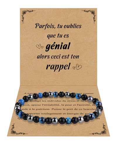 Merclix Bracelet Pierre Naturelle Homme Idee Cadeau Homme Original Utile Cadeau Papa Papy Collegue Frere Copain Mari Ado Garcon Fils Anniversaire Noel Retraite Fete Des Peres Bracelet Oeil De Tigre