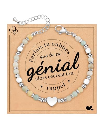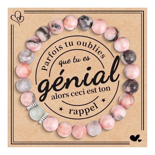 MANVEN Cadeau Femme Cadeau Fille Anniversaire Bracelet Femme Fille Maman Amitié Ado Amie Niece Idee Original Saint Valentin Noël Bracelet Pierre Naturelle de l'amitié Rose
