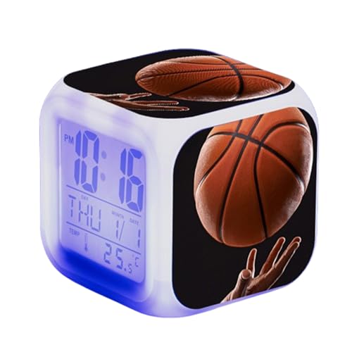 Reveil Numerique Veilleuse Basketball Cadeau d'anniversaire Ado Garcon Fille LED Alarme Créativité avec lumière Brillant dans la Nuit avec 7 Couleurs Changer La Date Affichage De La Température