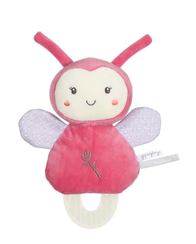 GIPSY TOYS – PELUCHE DOUDOU DE DENTITION COCCINELLE – GAMME BAMBOO – 1ER ÂGE – IDEE CADEAU NAISSANCE BEBE – FILLE ET GARCON – 13 CM – ROSE BEIGE ET GRIS