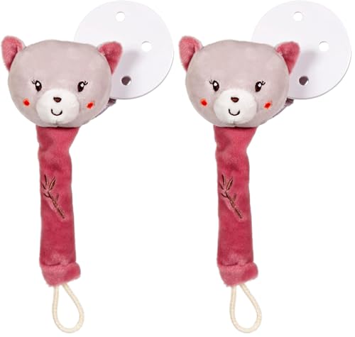 GIPSY TOYS – PELUCHE ATTACHE TETINE CHAT – GAMME BAMBOO – ATTACHE SUCETTE 1ER ÂGE – IDEE CADEAU NAISSANCE BEBE – FILLE ET GARCON – 13 CM – ROSE ET GRIS (Lot de 2)