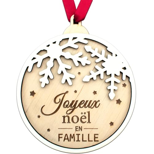 ERNESTINE - Boule de Noël personnalisée Famille en Bois - Décoration Sapin Personnalisable Bois - Boules gravées au Laser - Idée Cadeau Unique pour noël - Homme Femme