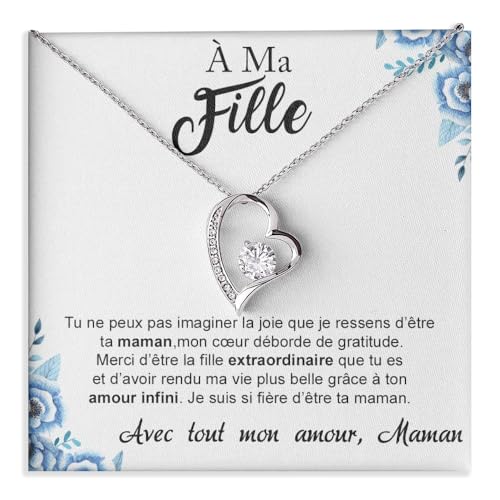 Bramart Collier pour femme À ma Fille Maman Argent Idées cadeaux pour elle, anniversaire ou Noël - Coffret cadeau avec dédicace comprise (Argent - A ma Fille)