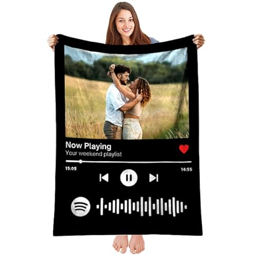 toyofmine Plaid Personnalisé Photo avec Spotify Code,Couverture Personnalisée,Cadeau Personnalisé pour Femme, Homme, Maman, Papa, Meilleure Ami,Famille,Idées de Cadeaux d'anniversaire