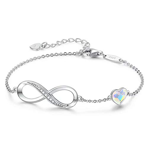 GEORGE · SMITH Bracelet Cœur pour Femme Bracelet Infini Réglable pour Femme, Bracelets Plaqué Argent avec Cristal Bleu Rose-Femme Maman Anniversaire Cadeau de Noël