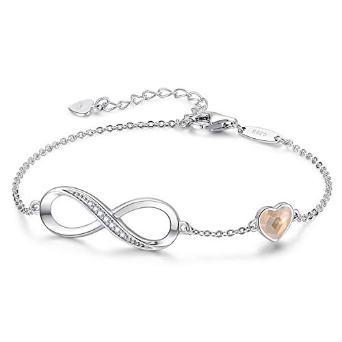 Angelady Classique Bracelet Femme-Infini 7in Plaqué Argent Bracelet Or avec des Cristaux, Bracelet Femme Cadeau Fête des Mères Anniversaire Femme Maman - avec Boîte Cadeau