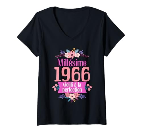 Femme 58 ans femme 1966 idée cadeau anniversaire drôle maman T-Shirt avec Col en V
