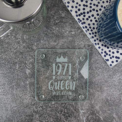 eBuyGB Dessous de verre carré gravé « This Queen was Born » - 1971 - Cadeau de 50e anniversaire pour maman