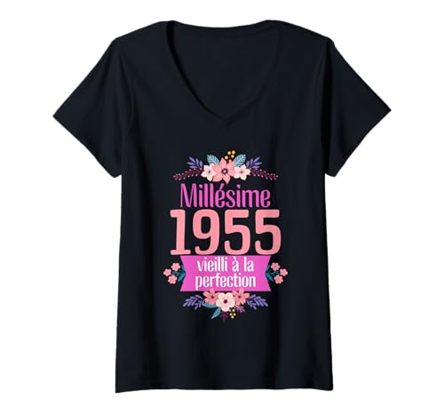 Femme 70 Ans Femme 1955 idée Cadeau Anniversaire drôle Maman T-Shirt avec Col en V