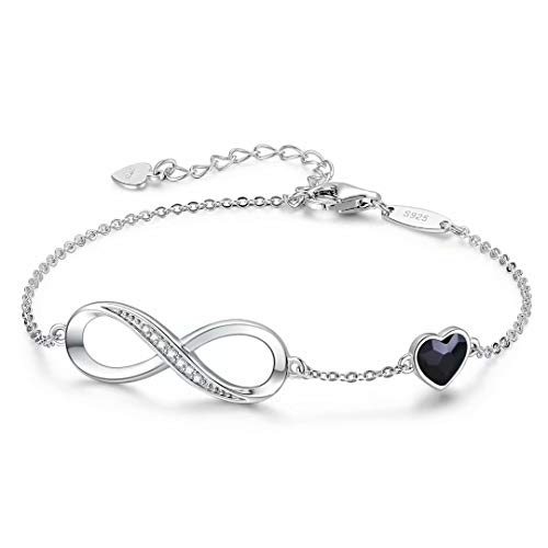 GEORGE · SMITH Bracelet Cœur pour Femme Plaqué Argent Bracelet Infini Réglable pour women, avec Cristal Bleu Violet-Femme Maman Anniversaire Cadeau de Noël