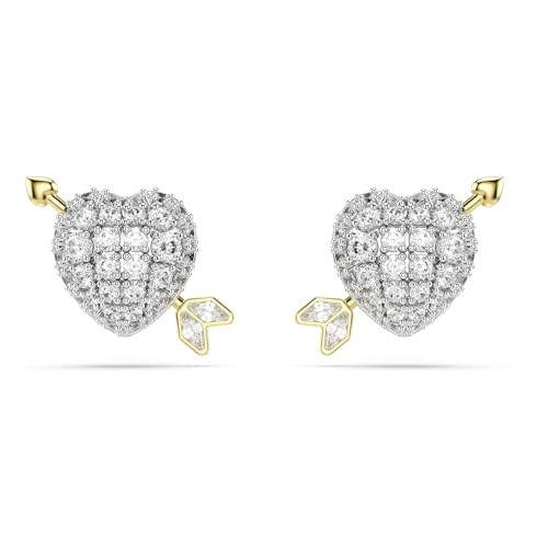 Swarovski Clous d'oreilles Idyllia, Tailles variées, Cœur avec flèche, Blanches, Finition mix de métal