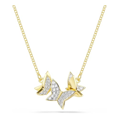 Swarovski Collier Idyllia Lilia, motif papillon serti de cristaux blancs, suspendu sur une chaîne réglable 38-43 cm, design délicat et élégant, placage de ton or
