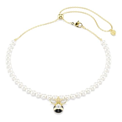Swarovski Ras-de-cou Idyllia, Perle de cristal, Tailles variées, Abeille, Blanc, Placage de ton or