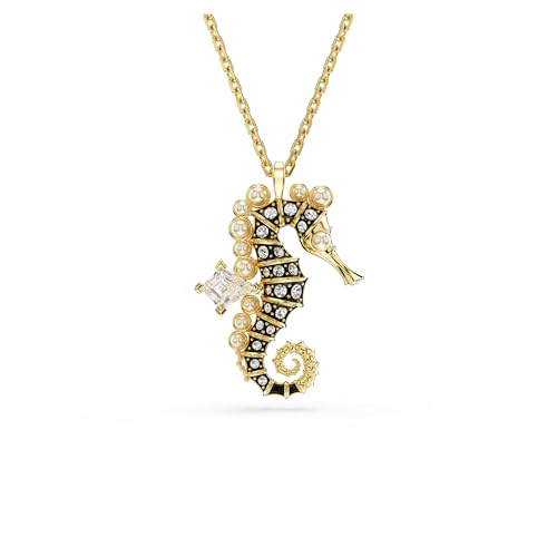Swarovski Pendentif Idyllia, Crystal pearls, Hippocampe, Bleu, Placage de ton or