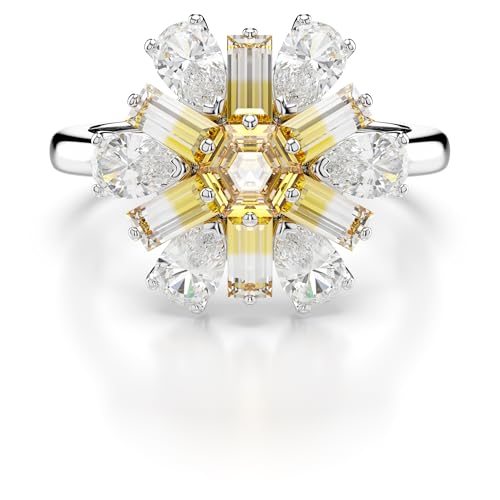 Swarovski Bague cocktail Idyllia, Tailles variées, Fleur, Jaune, Métal rhodié