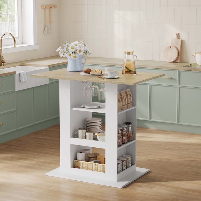 Table Haute Bar WOLTU - Mange Debout avec Rangement - Ilôt Cuisine - 105x68x94cm - Blanc+Chêne Clair