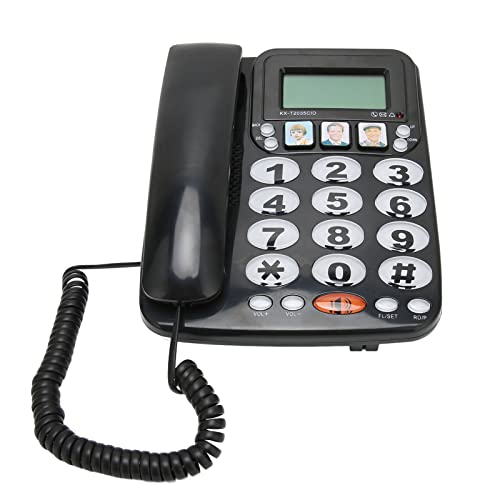 Dpofirs Téléphone à Gros Boutons pour Les Personnes âgées, Les Boutons d'image du Téléphone Fixe Filaire pour Les Patients avec Un Son Clair à Double Port, Stockant 3 Numéros Couramment(Le Noir)