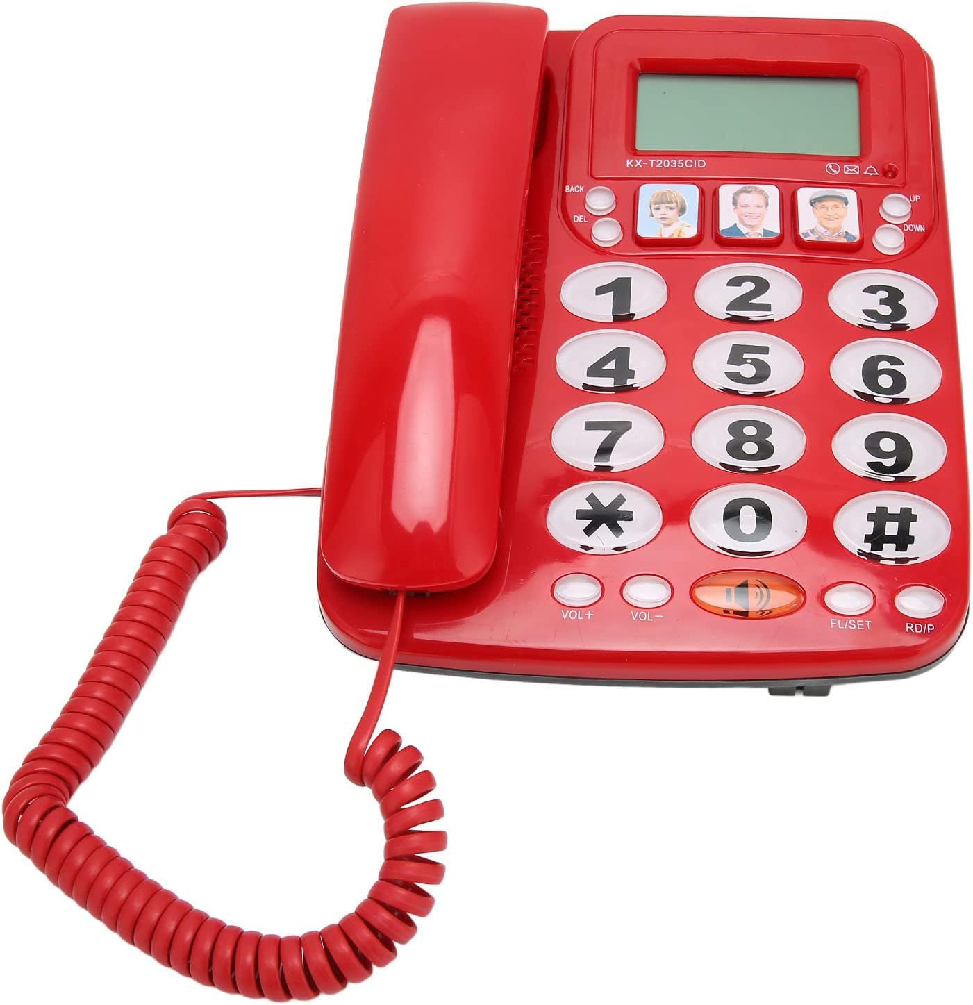 Téléphone À Gros Boutons Pour Les Personnes Âgées, Les Boutons D'Image Du Téléphone Fixe Filaire Pour Les Patients Avec Un Son Clair À Double Port, Stockant 3 Numéros Couramment(Rouge)