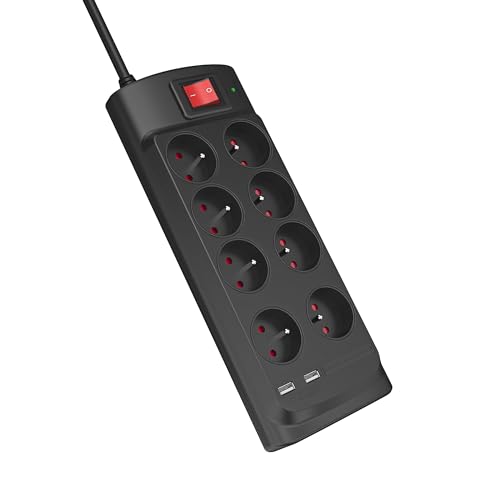 MONSTER - Power Parafoudre Parasurtenseur 8 AC + 2 USB-A FR - Protection électrique MOV Fireproof - Elimine Les interférences du Secteur - Améliore l'image et Le Son - 1,80 m