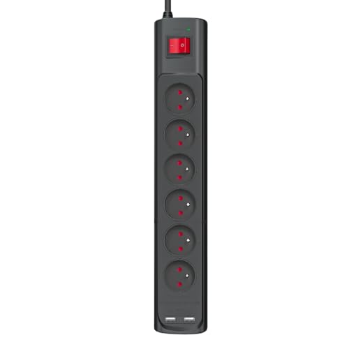 MONSTER - Power Parafoudre Parasurtenseur 6 AC + 2 USB-A FR - 840 Joules de Protection - Elimine Les interférences du Secteur - Améliore l'image et Le Son - 1,80 m