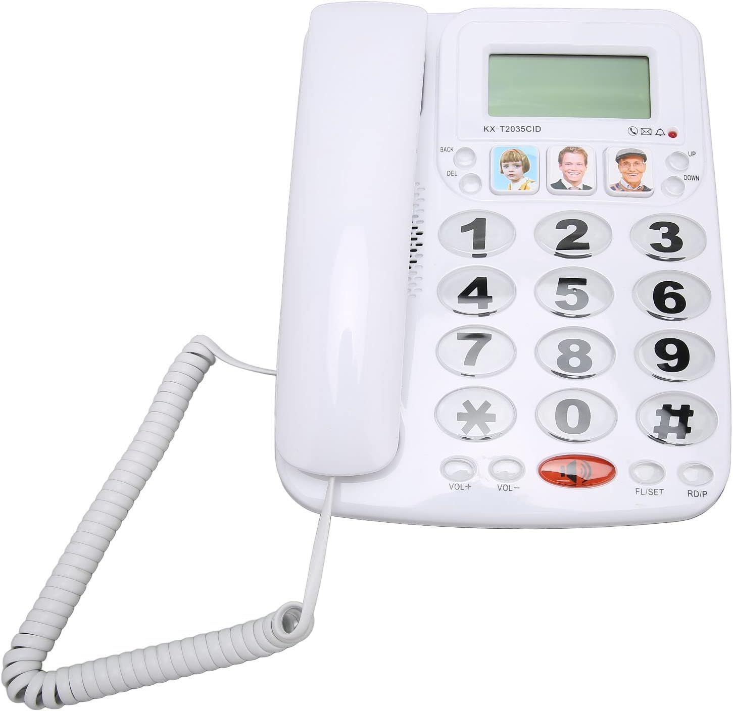 Téléphone À Gros Boutons Pour Les Personnes Âgées, Les Boutons D'Image Du Téléphone Fixe Filaire Pour Les Patients Avec Un Son Clair À Double Port, Stockant 3 Numéros Couramment(Blanc)