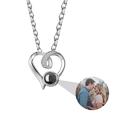 Custom4U Collier Infini avec Photo Personnalisé, Collier Cœur Argent pour Femmes Cadeau Projection Image 40+5cm Chaîne Acier Inoxydable, Écrin à Bijou pour Épouse, Petite Amie