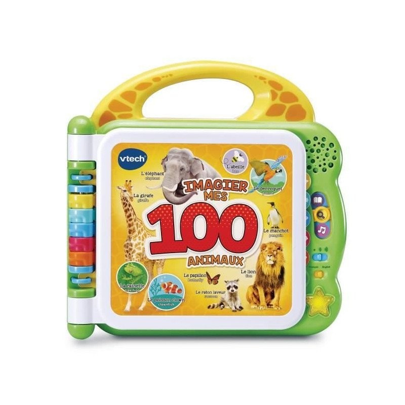 VTECH - Mon Imagier Bilingue - 100 Animaux - Livre interactif bilingue - Pour Enfant - Pile - Multicolore