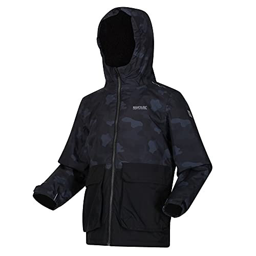 Regatta Veste Enfant imperméable à capuche, Blackcamo/Black, 7-8 Ans ( EU 128 )