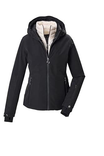 killtec 44931-000 KSW 135 WMN SKI JCKT Veste de ski imperméable avec capuche et jupe pare-neige amovible pour femme Noir Taille 42