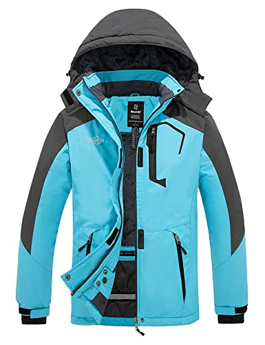 Wantdo Femme Blouson de Ski Imperméable Hiver Veste de Pluie Voyage Veste Polaire Randonnée Manteau Hiver Chaud Veste de Snowboard Montagne Bleu L