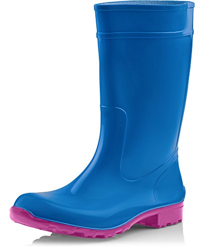 Ladeheid Bottes de Pluie Femme en Caoutchouc PVC avec Semelle Extérieure Antidérapante 100% Imperméable Chaussures pour Femmes résistantes à l'eau LA-967 (Bleu/Rose, 36 EU)