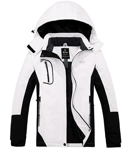 Wantdo Femme Veste de Ski Isolante Imperméable Veste Hiver Chaude Veste de Pluie Coupe-Vent Blouson de Ski Snowboard Veste d'hiver à Capuche Amovible Noir S