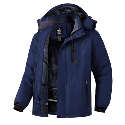 Wantdo Homme Manteau d'hiver Imperméable Snowboard Grande Taille Parka Randonnée Veste de Pluie Outdoor Blouson de Ski Décontracté Coupe-Vent Bleu Foncé 2 M