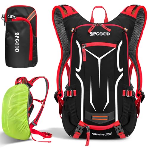 SPGOOD Sac à Dos de vélo 20L/25L/30L–Imperméable et Ultra léger pour Homme et Femme–Multifonctionnel avec Capuchon de Protection Contre la Pluie/Housse de Casque/Sac de téléphone