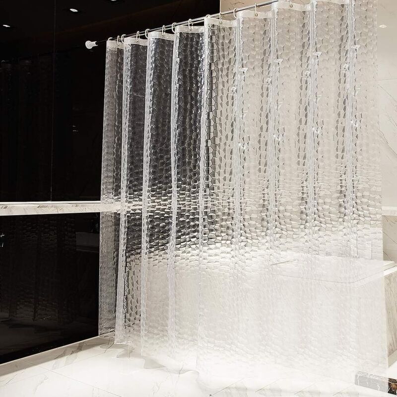 Rideau de Douche 120 x 180 cm 100% PEVA Semi-Transparent Imperméable Anti-moisissure sans PVC D'épaisseur 3D Eau Cube avec 12 Anneaux Salle de Bain