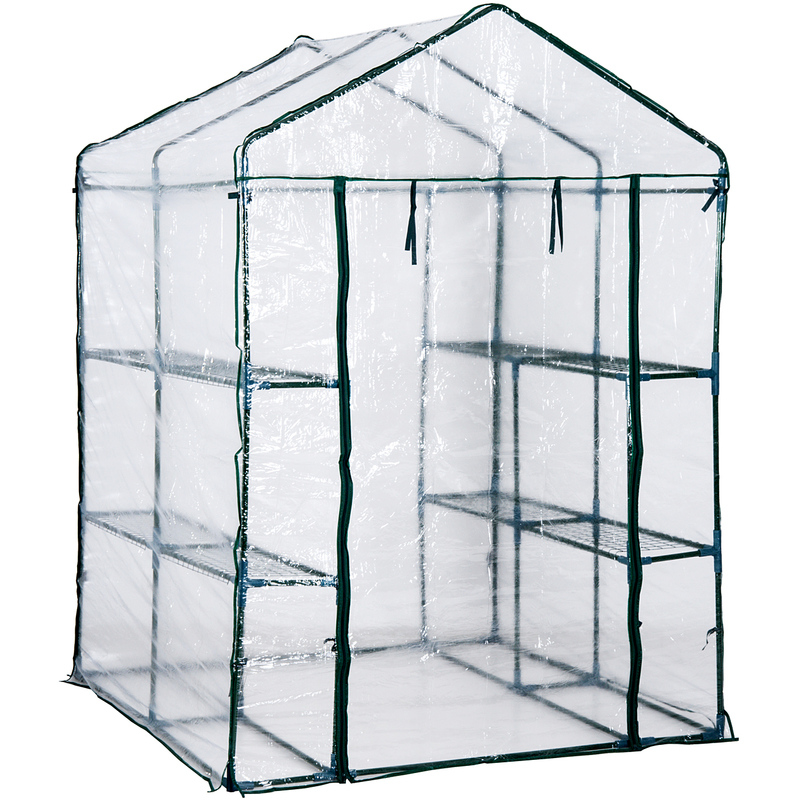 Outsunny - Serre de jardin balcon terrasse 8 étagères dim. 143L x 73l x 195H cm acier pvc imperméable anti-UV transparent vert