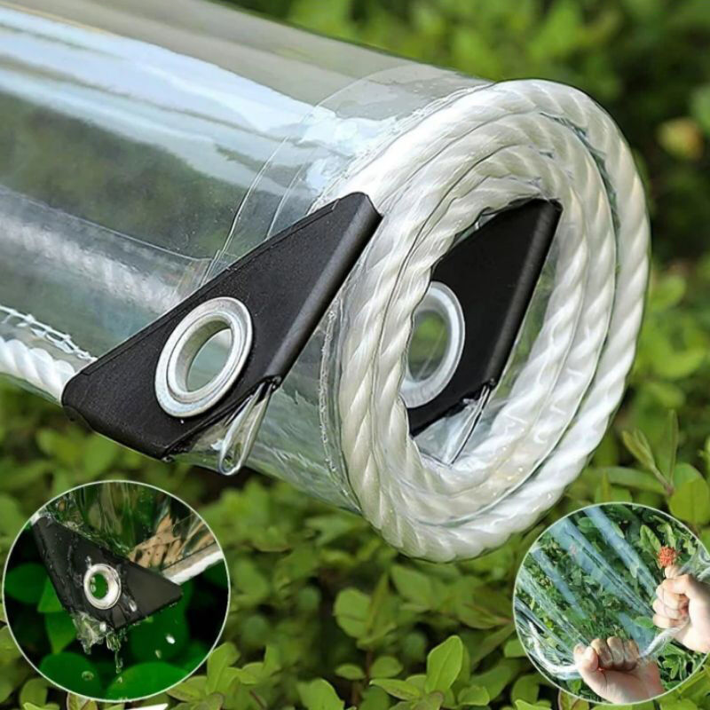 Bâche imperméable en PVC transparent avec boutonnières, résistante aux déchirures et au gel, pour porches et abris temporaires (2m x 4m).