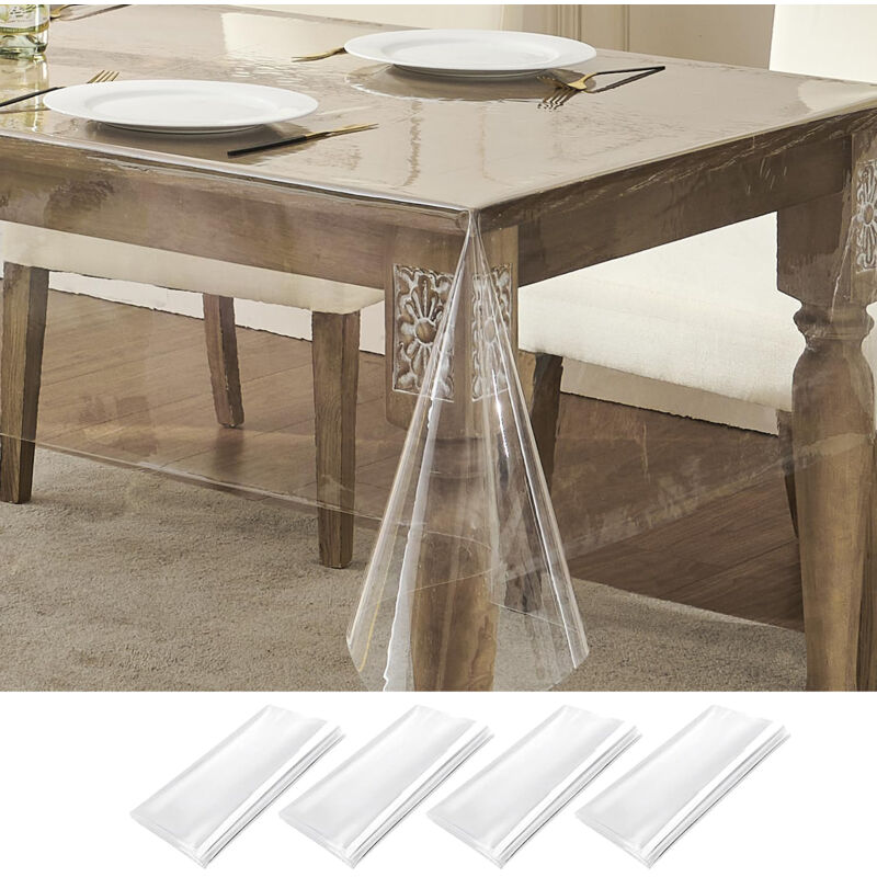 Nappe en PVC transparent, imperméable à l'huile, couverture de Table carrée transparente, 137x137cm, 4 paquets