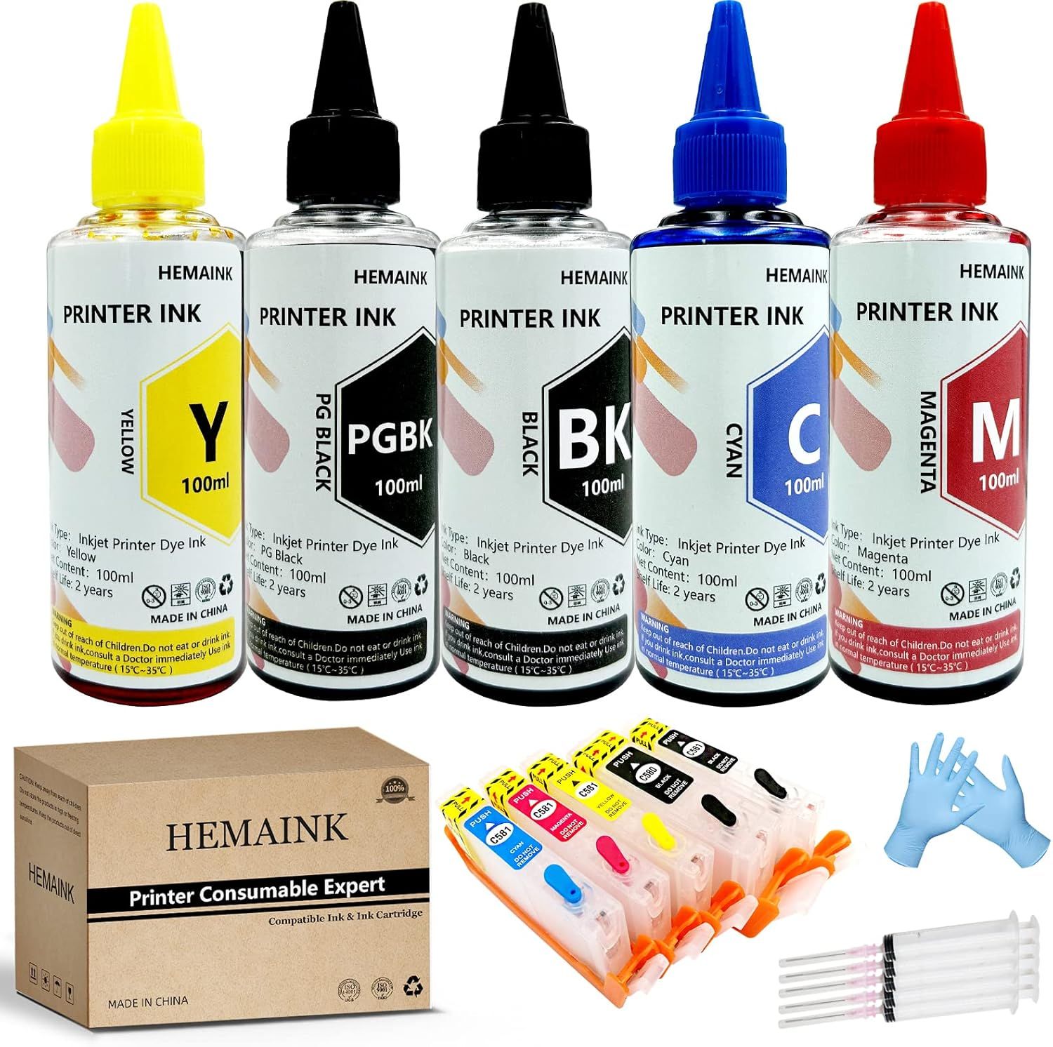 HEMAINK Cartouches d'encre rechargeables et 5 bouteilles d'encre compatibles pour imprimante Canon PGI-580XXL CLI-581XXL Pixma TS6150 TS6250 TS6251 TS6350 TS6351 TS705 TR7550 TR8550 TS9150 TS9155