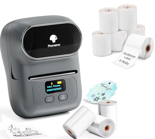 Phomemo M110 Étiqueteuse avec 4 Rouleau d'étiquette, imprimante Etiquette autocollante Bluetooth Thermique Portable, Utilisé au Bureau,Code à Barres,Petite Entreprise,Magasin