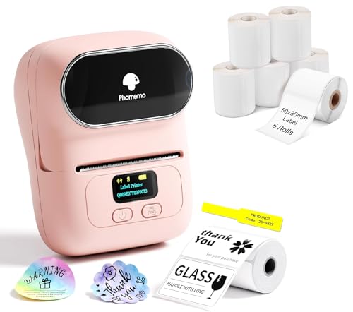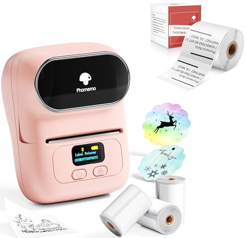Phomemo Étiqueteuse M108, Étiqueteuse Autocollante contien 1 Rouleau Étiquettes, Imprimante Etiquette Thermique,pour Les Codes-Barres,Vente au détail, Bureau, Compatible avec iOS et Android-Rose
