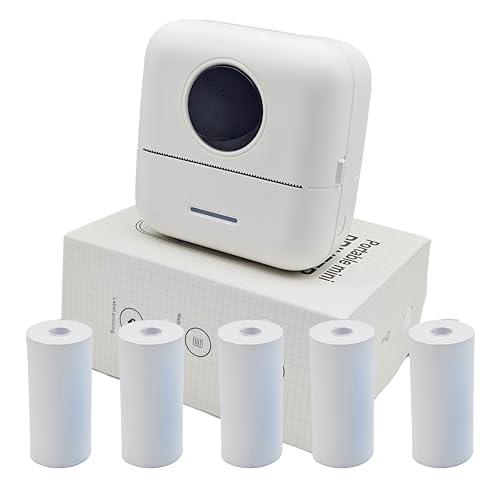 Zplumestarxx Mini imprimante portable en papier autocollant, mini imprimante autocollante, imprimante d'étude pour photos, compatible avec Android et iOS Bluetooth avec 5 rouleaux - Blanc