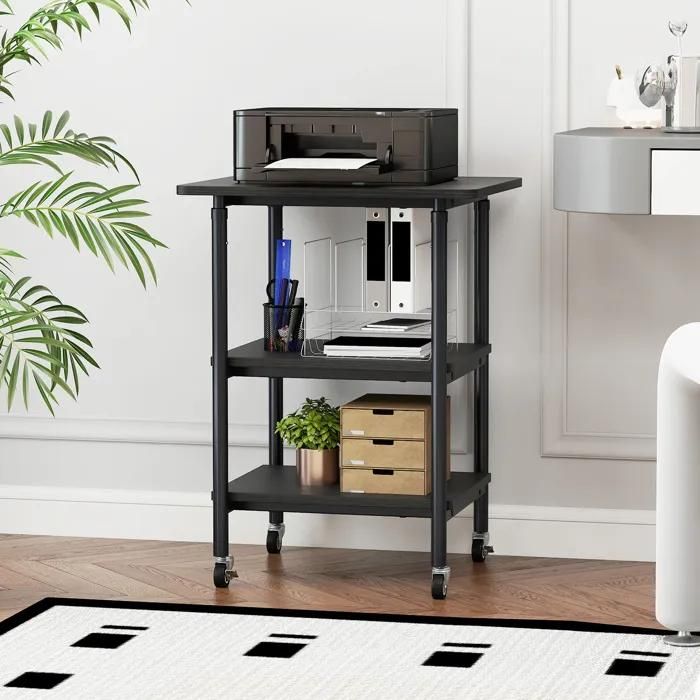 Costway Étagères De Rangement Pour Imprimante Scanner, Fax À 3 Niveaux, Roues De Verrouillable 49 X 40 X 65/77 Cm (L X L X H) Noir