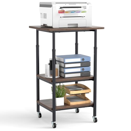 Costway Étagères De Rangement Pour Imprimante Scanner, Fax À 3 Niveaux, Roues De Verrouillable 49 X 40 X 65/77 Cm (L X L X H) Marron