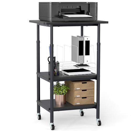 COSTWAY Support d'Imprimante Réglable en Hauteur, Chariot d'Imprimante à 3 Niveaux avec Étagères de Rangement et Roues Verrouillables, Meuble Mobile pour Imprimante 3D, Scanner, Fax (Noir)