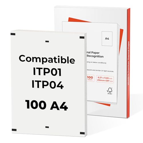 MUNBYN ITP04 A4 Papier Pour Imprimante Thermique, Papier Thermique A4 100 Feuilles, Compatible avec l'imprimante Thermique Portable ITP04/ITP01/A40, Papier Thermique à Alimentation Continue, 210*297mm