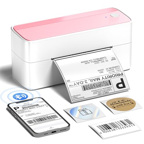 MUNBYN Imprimante Thermique Bluetooth, Imprimante d'Étiquettes 4x6 sans Fil Haute Vitesse pour Colis et Petites Entreprises à Domicile, Compatible avec iPhone/Android/Mac/Windows/Colissimo/UPS, Rose