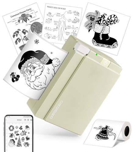 ORGBRO Mini Imprimante, X3 Thermique Bluetooth Imprimante Autocollante Portable, avec 1 Rouleau de Papier Thermique, 300DPI Petite Printer pour DIY Photos, Notes, Compatible iOS Android, Vert Olive